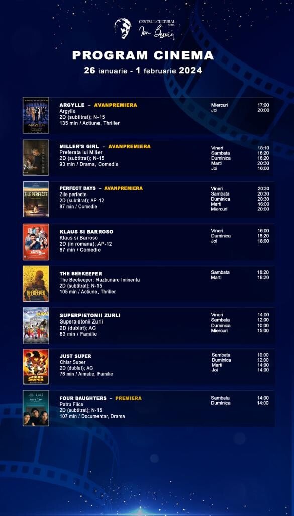 Program Cinema „Ion Besoiu” Sibiu 26 ianuarie – 1 februarie: