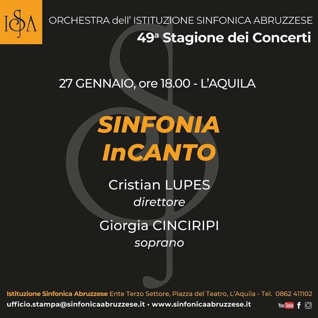 Cele două concerte vor avea loc în zilele de sîmbătă, 27 ianuarie 2024, în sala teatrului „V. Antonellini” din L’Aquila, respectiv duminică, 28 ianuarie 2024, la Palazo Kursaal din Giulianova.