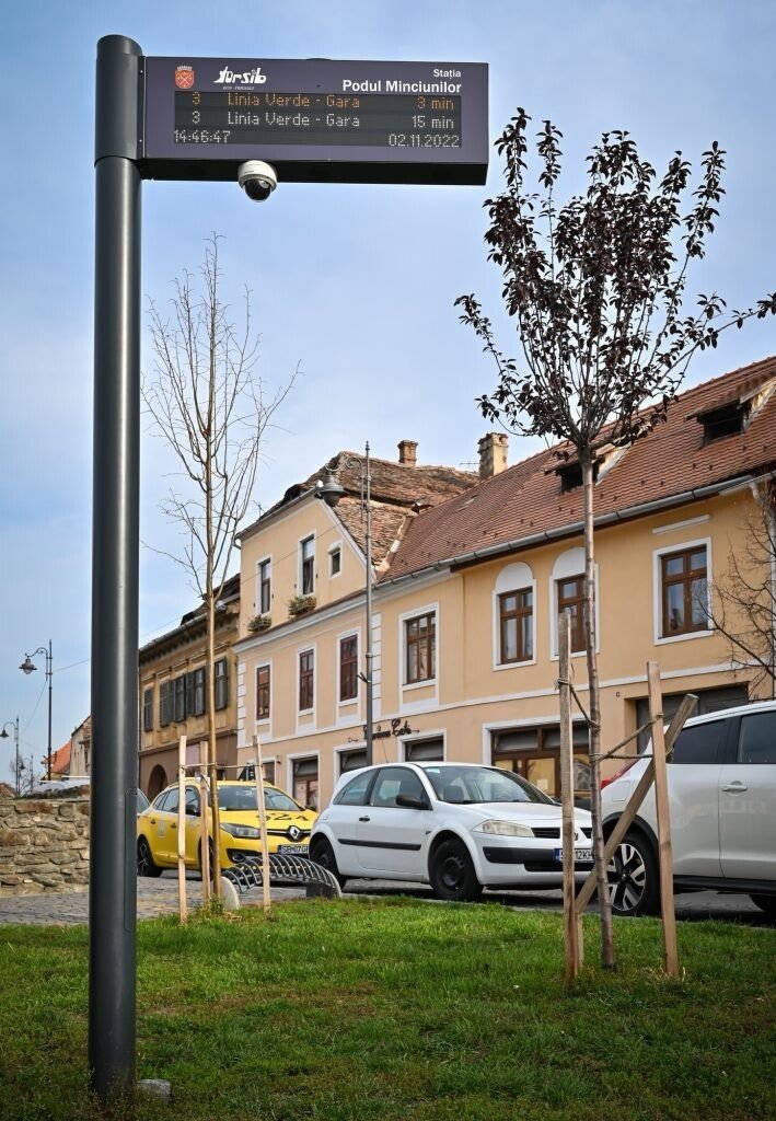 Primăria Sibiu a inițiat în această săptămână procedura de achiziție a încă 110 afișaje digitale de informare a călătorilor în stațiile Tursib, în cadrul a două proiecte cu finanțare europeană nerambursabilă, prin PNRR: „Sisteme integrate de informare a calatorilor în stațiile de transport public din municipiul Sibiu’’ și „Sisteme inteligente de transport la nivelul municipiului Sibiu”.