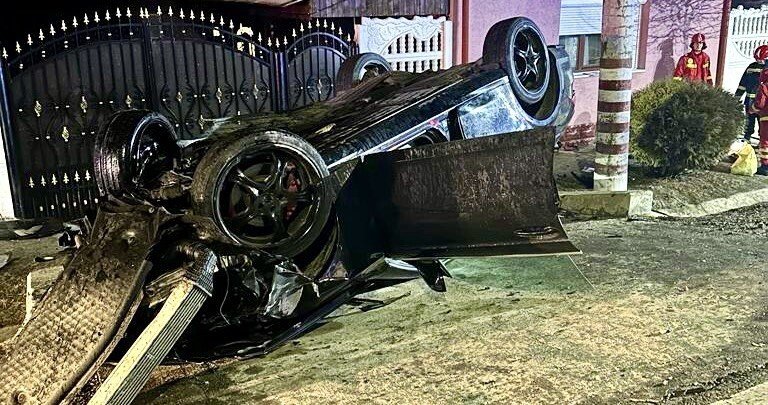 Impactul a fost atât de puternic încât șoferul a fost proiectat afară din autoturism.