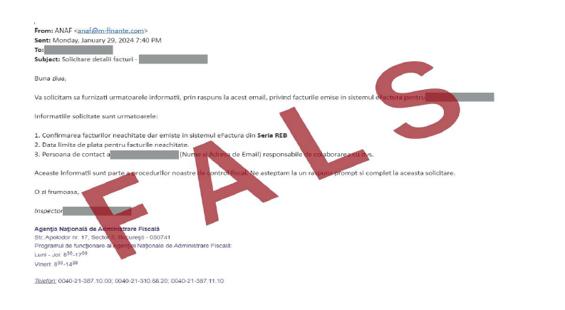 Atragem atenția că această adresă de e-mail NU aparține ANAF!