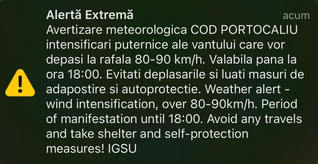 În acest sens IGSU a transmis populației un mesaj de avertizare RO-Alert.