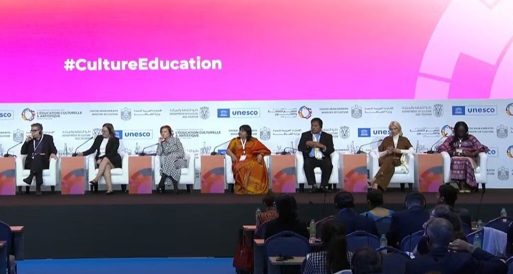 Conferinţa Mondială privind educaţia culturală şi artistică de la Abu Dhabi este primul eveniment UNESCO dedicat acestei teme, fiind organizat în conformitate cu Decizia 211/EX/39 a Consiliului Executiv UNESCO, în baza programului şi bugetului stabilite pentru perioada 2022-2025 (Decizia 41C/5), scopul său fiind adoptarea Cadrului UNESCO pentru educaţia culturală şi artistică, în vederea completării şi actualizării documentelor Road Map for Arts Education (Lisabona, 2006) şi Agenda de la Seoul: obiective pentru dezvoltarea educaţiei artistice (2010), ce vizează întărirea consensului global privind importanţa consolidării legăturii dintre cultură şi educaţie şi înaintarea propunerilor privind adoptarea unor politici şi acţiuni de integrare a celor două domenii. La reuniune sunt prezenţi aproximativ 90 de miniştri şi vice-miniştri ai culturii şi educaţiei din întreaga lume, care au adoptat o declaraţie comună ce reprezintă dezideratele globale în materie de educaţie prin cultură şi artă.