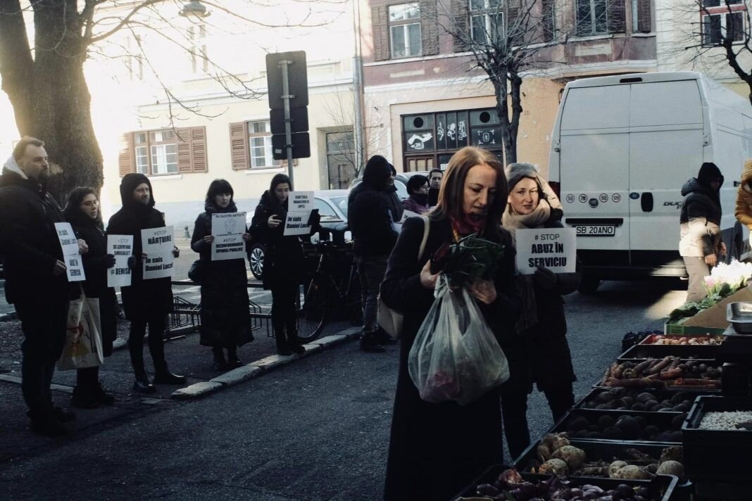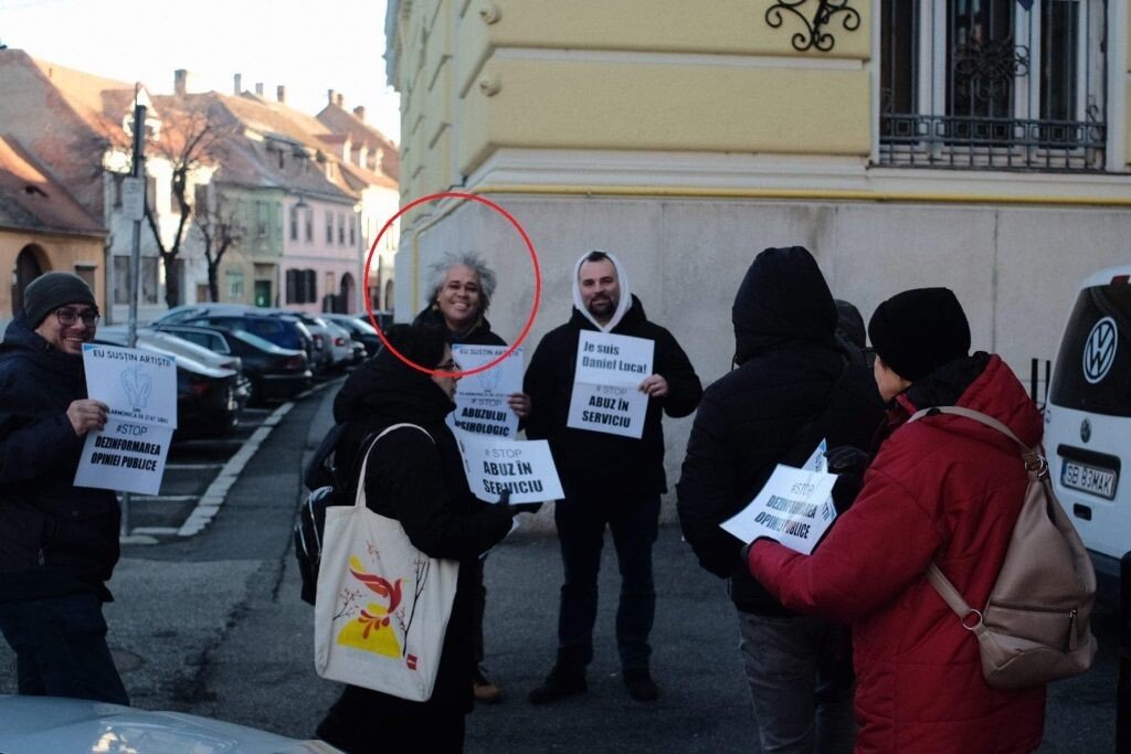 Monica Florescu Fernandez, liderul Sindicatului Instrumentiștilor de la Filarmonica Sibiu, alături de alți sindicaliști și soțul ei Mackim Fernandez Samodaiev protestează de 24 de zile în fața Consiliului Județean Sibiu pentru a cere demisia managerului Cristian Lupeș. Astăzi, Monica Florescu a dus protestul sindical mai departe: a hărțuit-o pe președinta Consiliului Județean, Daniela Cîmpean în timp ce aceasta cumpăra legume de la Piața Volantă din fața sediului instituției.