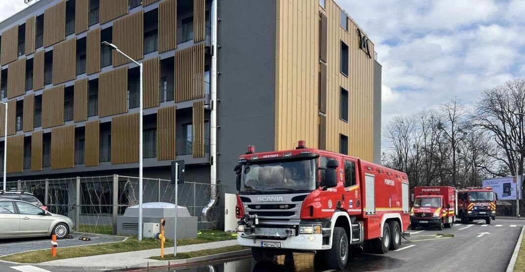Intervenția se desfășoară la cel mai nou hotel de pe Bulevardul Victoriei din Sibiu, respectiv hotelul Mercure Arsenal Sibiu. Aceste exerciții sunt necesare și benefice pentru întreaga comunitate, pentru antrenarea unei reacții prompte și eficiente în cazul producerii unei situații de urgență.