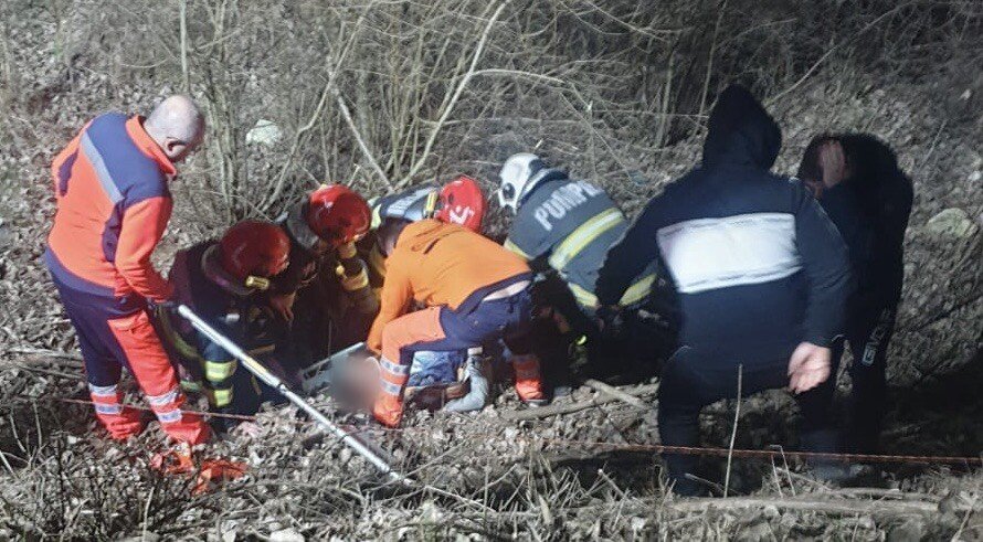 „SAJ SIBIU a intervenit cu un echipaj cu medic, in apropierea stației de epurare care se afla între localitatea Mohu și Selimbar pentru un bărbat de 27 de ani, care a căzut cu un ATV într-o răpa.