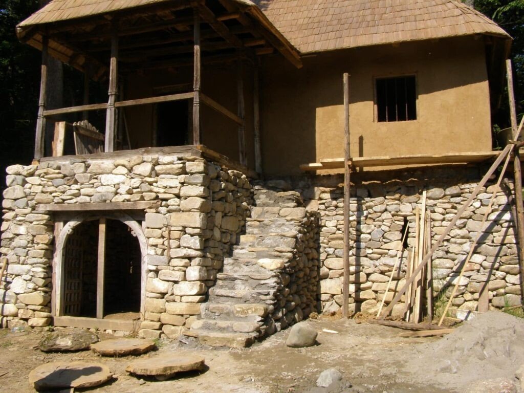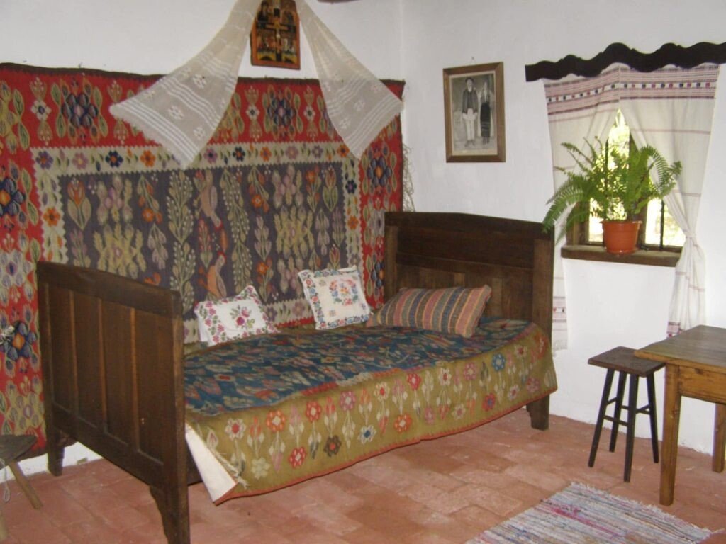 \”Doi ani mai târziu, a fost reconstruită și are forma exactă a celei de pe bancnota de 10 lei.\” Nu-i adevărat! Se vede și din pozele de mai sus. În casa veche se intra drept de pe scară, iar în cerdac se ajungea prin casă. Unde era ușa s-a zidit iar peretele din cerdac și-a pierdut fereastra având doar ușa la mijloc. Nu înțeleg de ce s-au făcut modificările și nici ce rost are să te mai amăgești cu minciuna că ai păstrat <> forma originală.