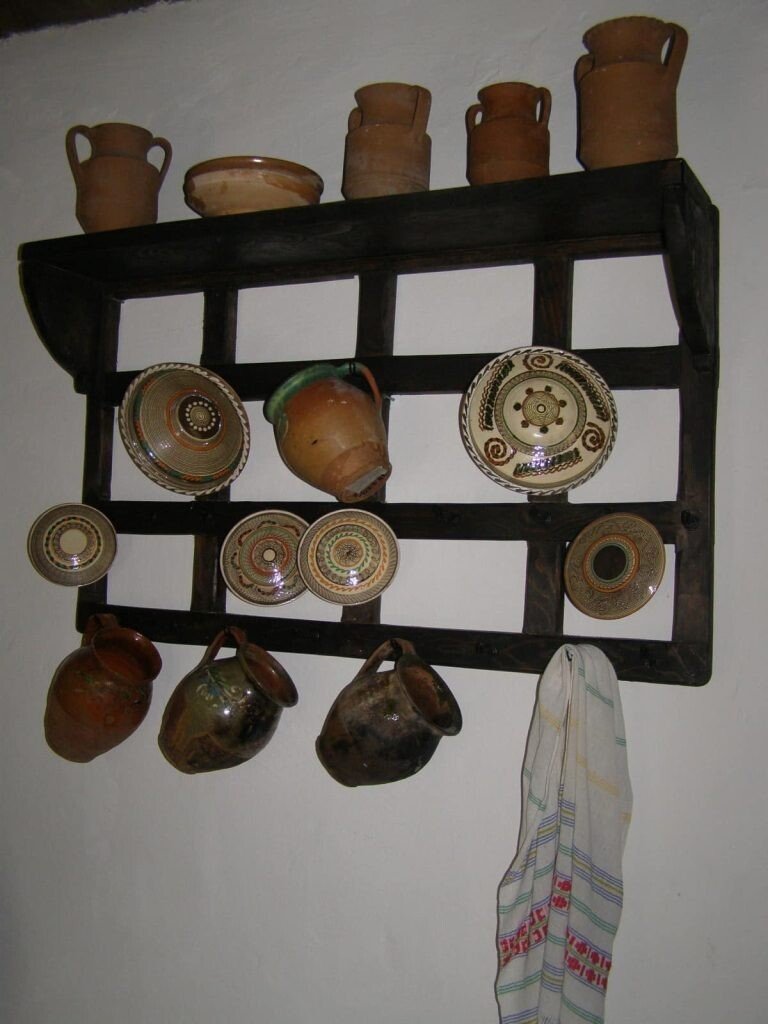 La primul nivel al casei sunt amenajate două încăperi, o bucătărie și o cameră, ambele fiind mobilate și decorate cu mobilier și obiecte din zona Vlădești, localitate cunoscută și în prezent pentru olărit și vastele livezi cu pomi fructiferi.