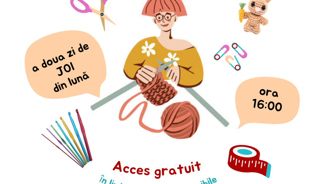 Biblioteca Județeană ASTRA Sibiu anunță organizarea unui Atelier de croșetat care se va desfășura lunar la sediul Filialei Bâlea. Atelierele vor avea loc în a doua zi de joi a fiecărei luni, în intervalul orar 16:00-18:00.