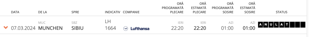 Dacă se poate să mă informați ref zbor Sibiu_Munchen , data 12-03 ,0ra 18;55