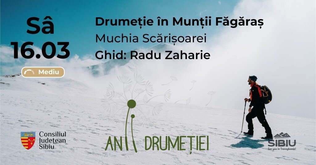 Echipa Anii Drumeției invită iubitorii de aventură să exploreze frumusețile naturii, sâmbătă, 16 martie 2024, într-o drumeție în Munții Făgăraș: Cabana Bărcaciu și Muchia Scărișoarei. Drumeția este una de dificultate medie-mare cu o diferență de nivel de 1200 m.