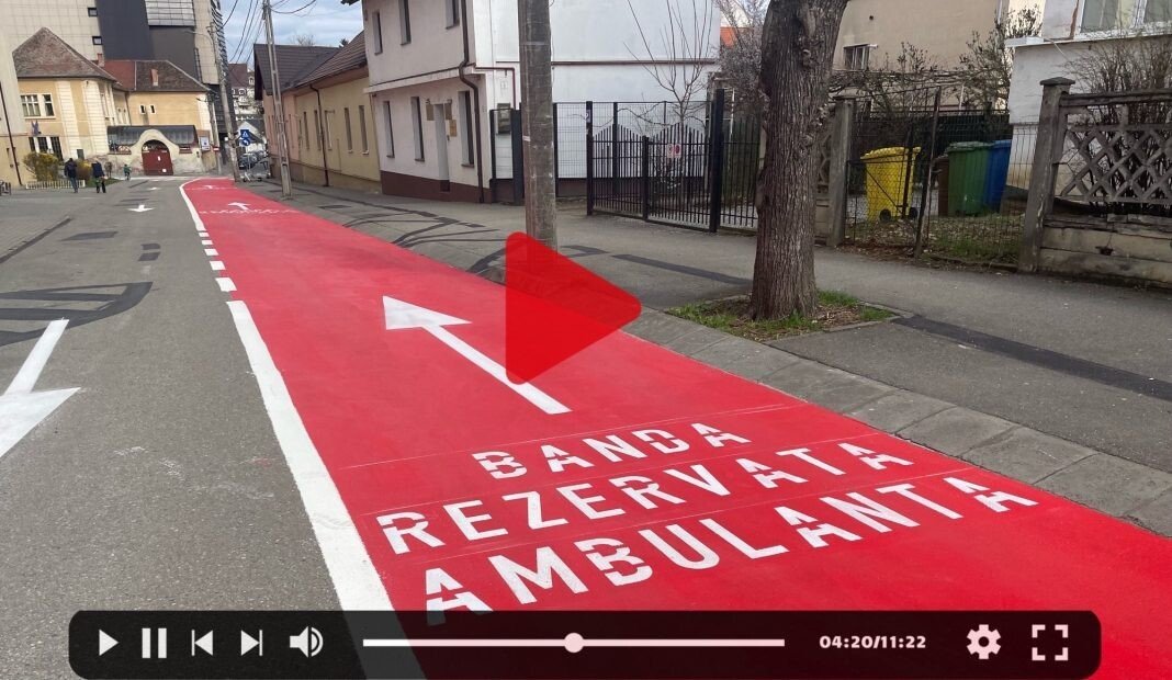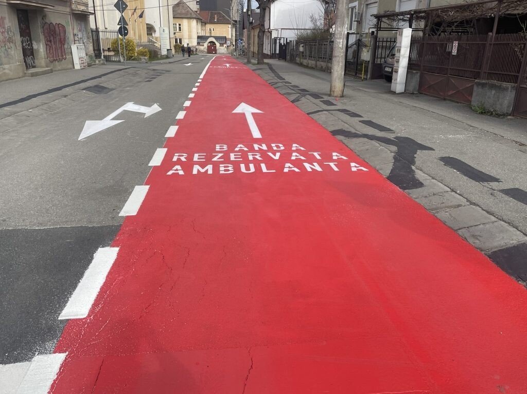 Banda de culoare roșie este destinată exclusiv pentru ambulanțele și autospecialele Serviciului mobil de urgență, reanimare și descarcerare, care circulă spre Unitatea de primiri urgențe a Spitalului Județean Sibiu.