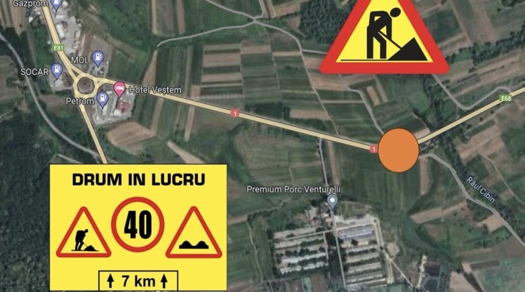Circulația pe DN1, în apropierea sensului giratoriu de la Veștem va fi închisă pe o bandă și dirijată de semafoare pentru o intervenție la rosturile de dilatație de pe podului de peste râul Cibin.