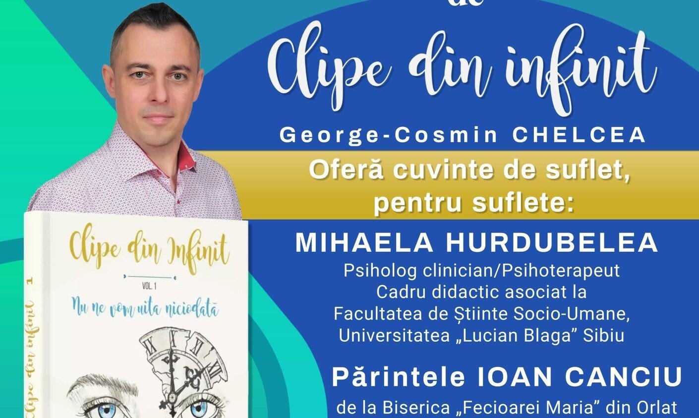 Evenimentul de lansare a cărții „Clipe din infinit”, a autorului Cosmin Chelcea, va avea loc vineri, 22 martie 2024 la Sala Festivă a „Bibliotecii Astra” din Sibiu, începând cu ora 17:00.