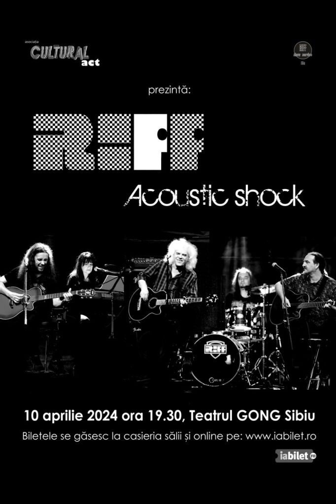 Asociația CULTURAL Act organizează miercuri 10 aprilie 2024 de la ora 19.30, în Sala Teatrului Gong Sibiu, concertul Riff – Acoustic Shock