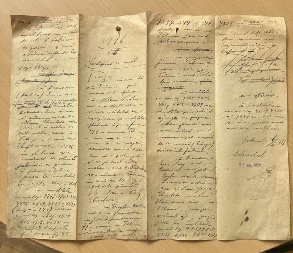 „Am găsit în aceste documente informații fascinante din istoria administrativă a orașului, precum registrul de taxe și impozite pe care le plăteau tălmăcenii pentru bunurile și animalele avute, convocatoare ale ședințelor de consiliu local, consiliu din care făcea parte preotul comunei și dascălul, proiecte în creion pentru constructie casă și alte documente care au stau martore istoriei.” se arată într-o postare Facebook a Primăriei Tălmăciu