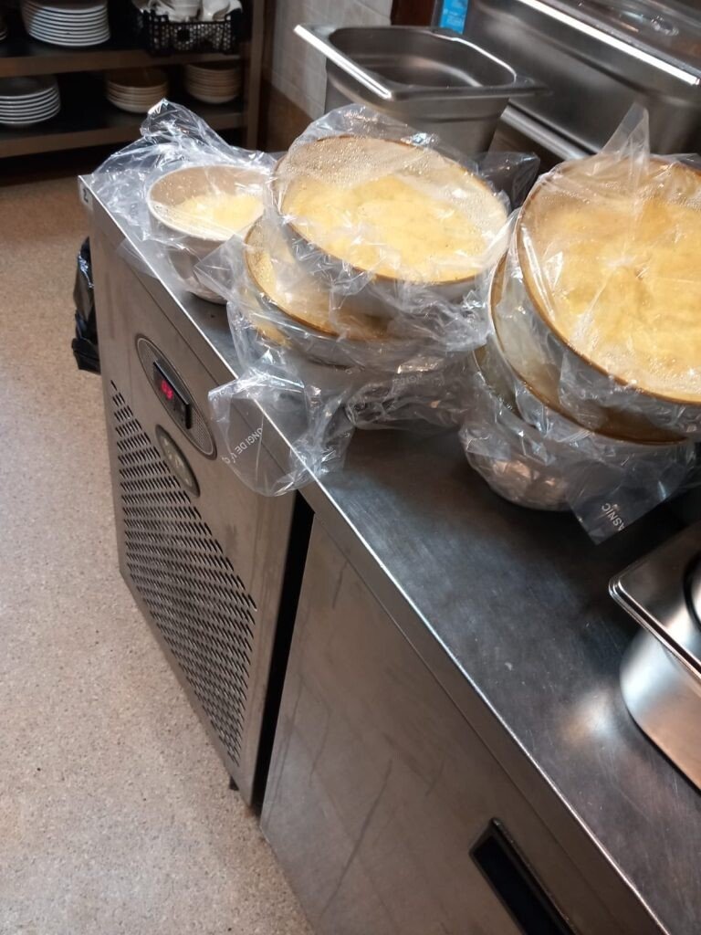 - ciorbele, tochitura și orezul, preparate gătite, se aflau depozitate în frigiderul din bucătăria unității, contrar prevederilor legale de a se păstra la minim 60° Celsius