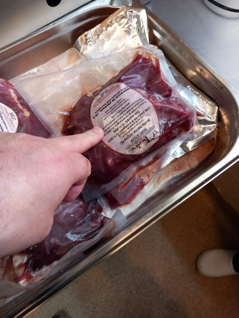 - produsele provenite din stare de congelare erau depozitate în agregatele frigorifice din bucătăria unității fără a fi precizată data decongelării