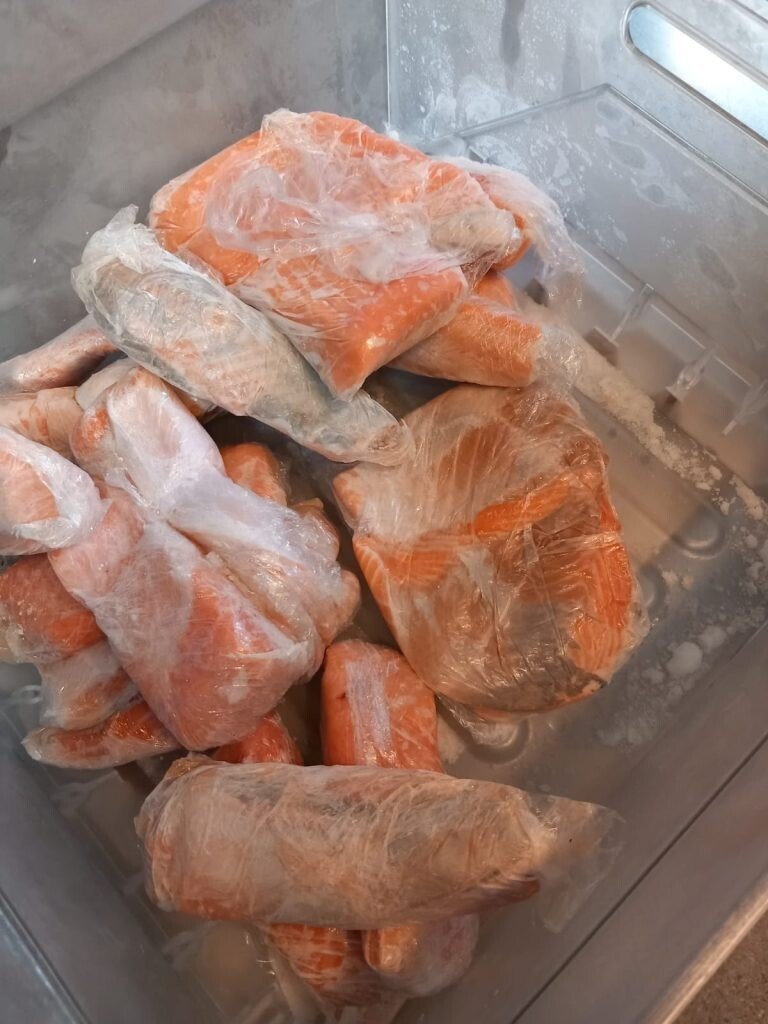 - somonul recepționat în stare congelată aflat în lada frigorifică din bucătăria unității era porționat, ceea ce conduce la concluzia că s-a schimbat starea termică a acestuia