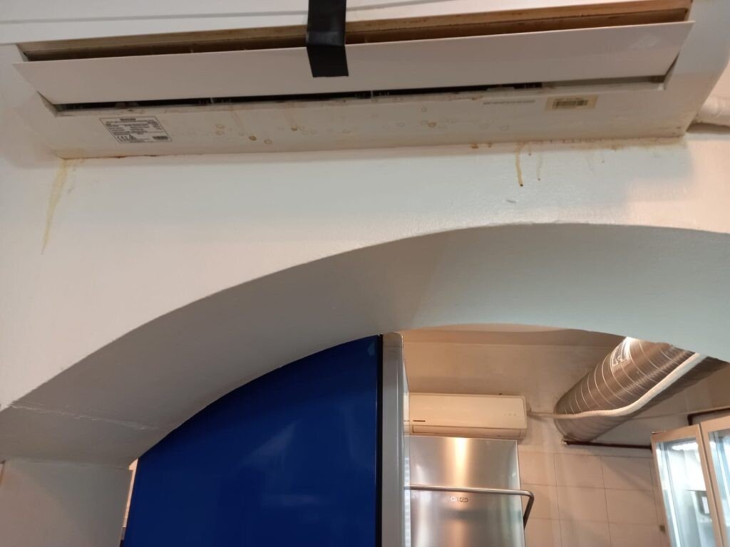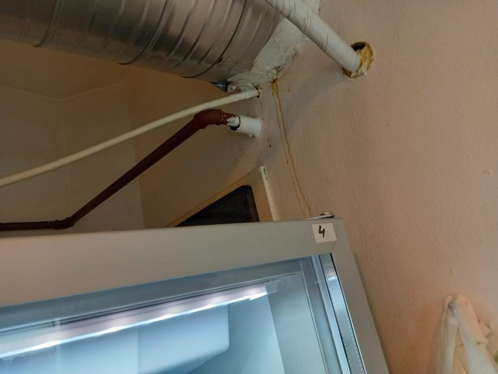 - pereții bucătăriei prezentau scurgeri de grăsime în zona tubulaturii hotei și în zona aparatului de climatizare