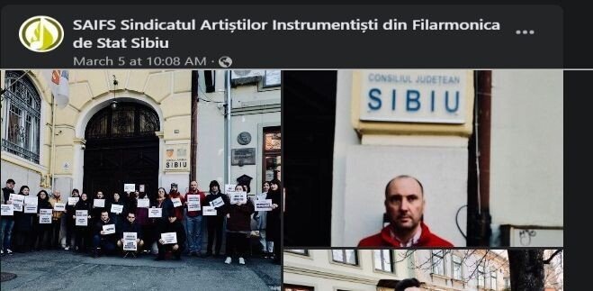 „Pe parcursul lunii martie, Comisia de avizare a adunărilor publice din Municipiul Sibiu a analizat și avizat favorabil trei cereri formulate de Sindicatul Artiștilor Instrumentiști din Filarmonica de Stat Sibiu pentru organizarea unor acțiuni de protest, după cum urmează: