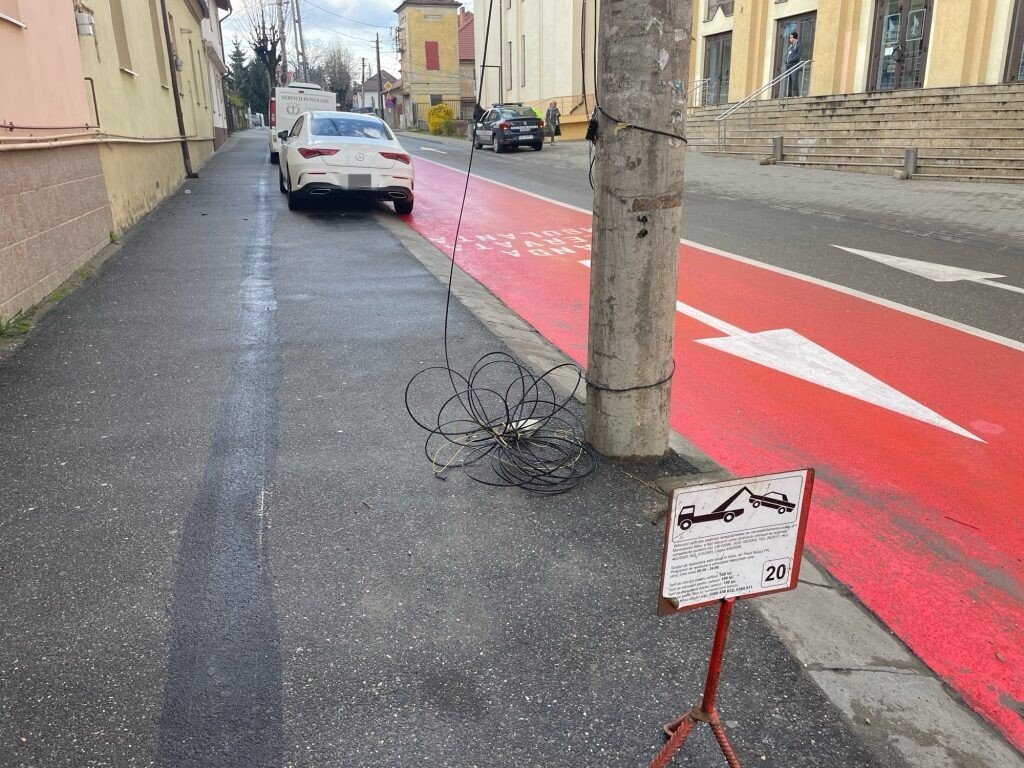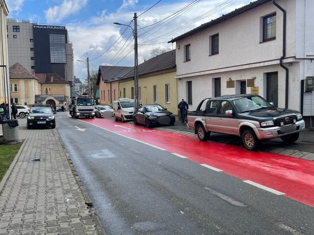 Banda specială pentru Ambulanțe operaționalizată cu mare fast acum 10 zile, are primii vecini nepoftiți. Mai mulți șoferi au parcat astăzi pe trotuarul de lângă banda roșie, lucru total interzis.
