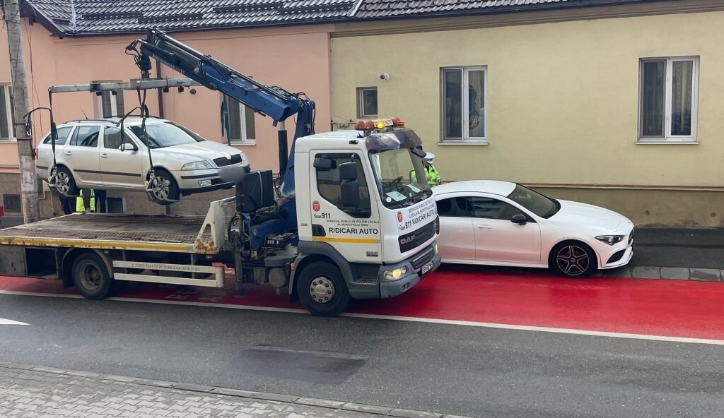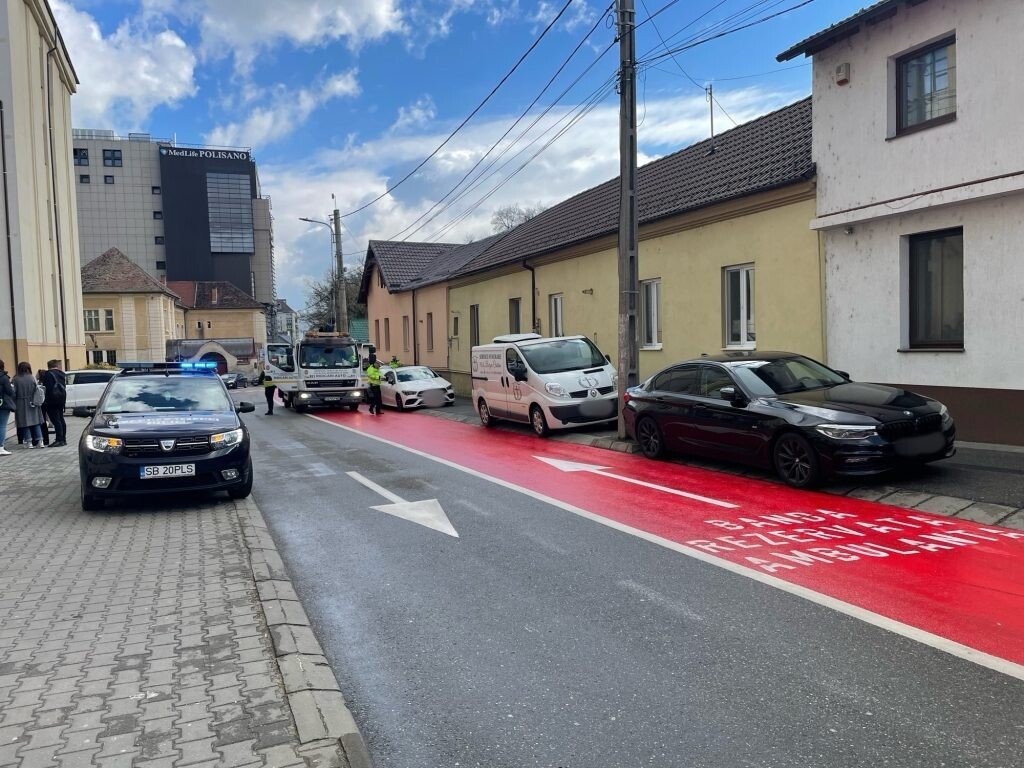 Poliția Locală Sibiu nu a stat nepăsătoare și a ajuns la fața locului, împărțind amenzi și solicitând autospeciala pentru ridicări auto. În doar câteva zeci de minute, două mașini „au pornit într-o aventură costisitoare” spre strada Preot Bacca din Sibiu. Chiar și ridicarea mașinilor a încurcat puțin traficul, o ambulanță SMURD fiind nevoită să aștepte după un taxi, dar și după alte mașini. Asta pentru că banda roșie era ocupată cu operațiunea de ridicare a mașinilor.