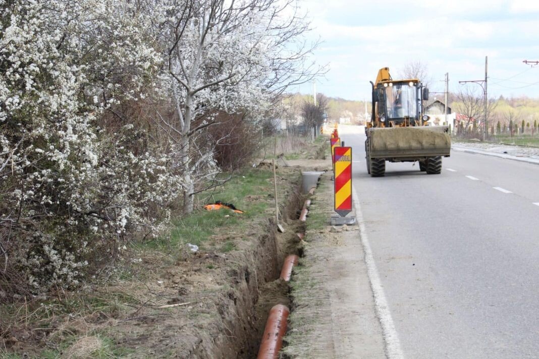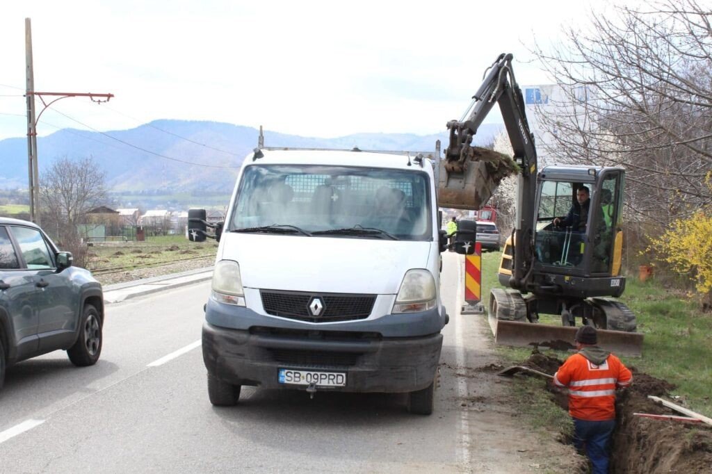Se lucrează la canalizarea ce va prelua apele pluviale de pe suprafața drumului județean 106 A Sibiu – Rășinari, cât și la terasamentul pistei amplasate pe partea dreaptă a șoselei, în direcția Rășinari.