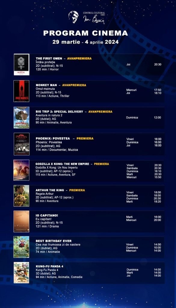Programul cinematografic din perioada 29 martie – 4 aprilie 2024:
