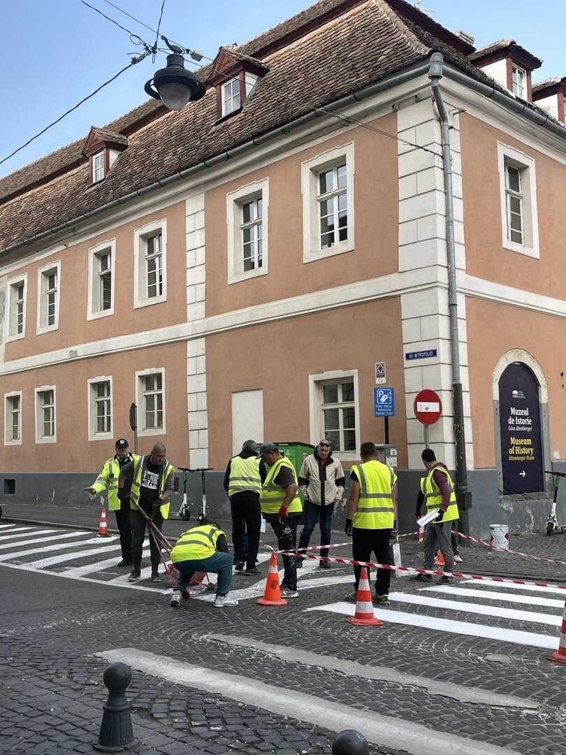 Un cititor SIBIU INDEPENDENT ne-a trimis această fotografie realizată luni dimineața pe strada Mitropoliei din Sibiu. Se făcea un marcaj chiar lângă sediul Primăriei.
