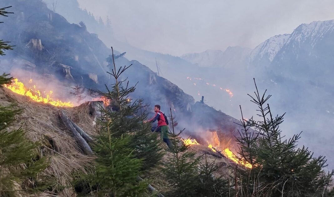 Situația critică în Munții Făgăraș după ce un incendiu a izbucnit într-o zonă cu vegetație uscată. Focul a cuprins mai multe hectare de pădure și riscă să fie extins de vântul puternic.