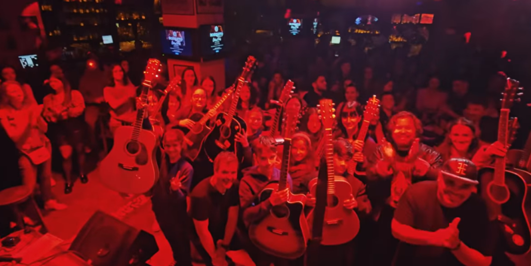 Aflați la un concert în Oldies Pub, trupa de rock Boscquito a avut parte de o surpriză. La finalul concertului, fanii s-au dat la o parte pentru a face loc… unei armate de copii înarmați cu chitări! Chitariștii juniori de la proiectul Pune Mâna pe Chitară au cântat celor de la Bosquito, rămași mască, pe scenă.