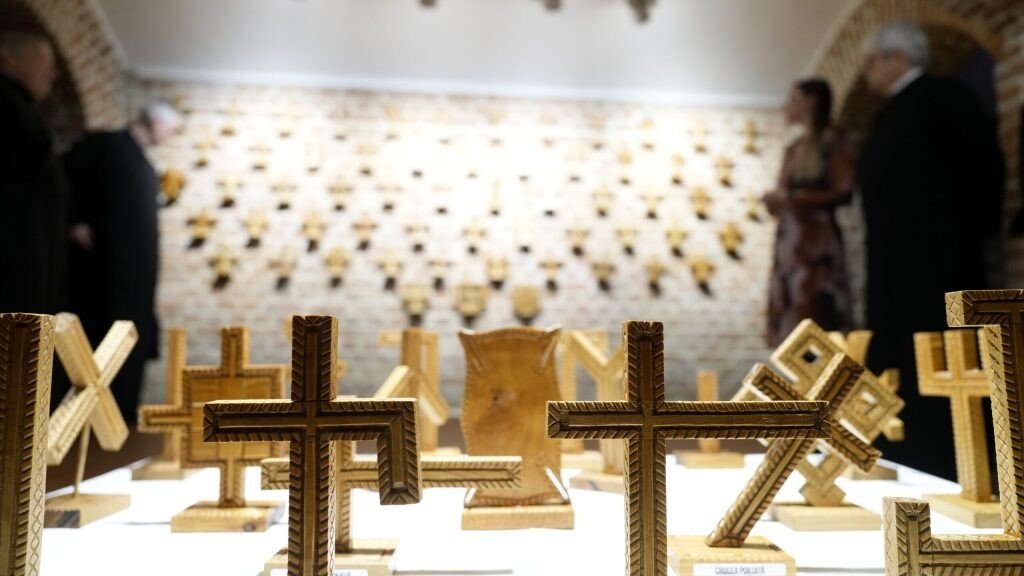 100 de cruci de lemn atent lucrate manual de părintele Vasile Davidoiu au fost prezentate, ieri, publicului la vernisajul unei expoziții inedite. În subsolul Centrului de Restaurare al Arhiepiscopiei Sibiului, creștinii iubitori de frumos alături de IPS Laurențiu, Mitropolitul Ardealului au participat la vernisajul expoziției Crux Chritiana. Tipuri de cruci. Expoziția este curatoriată de Dr. Maria Modi, coordonatoarea centrului și prezintă realizările sculpturale ale părintelui Vasile Davidoiu, de la Parohia Poienița (Prot. Avrig), un împătimit al sculpturii.
