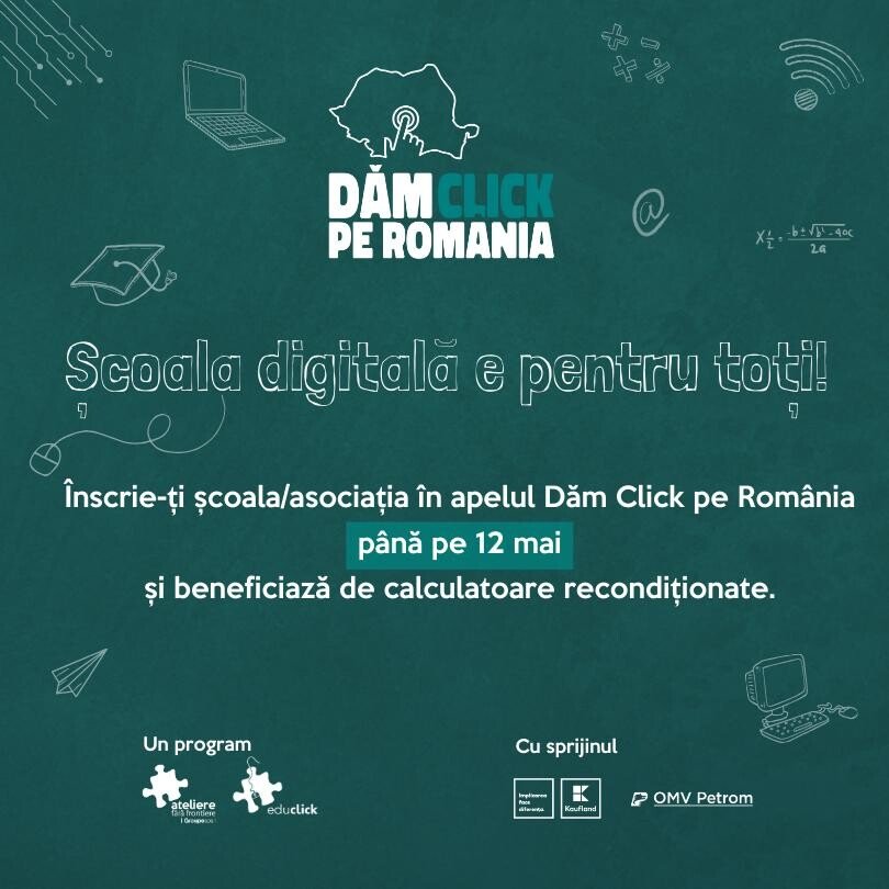 Proiectul Dăm Click pe România este desfășurat cu susținerea financiară a OMV Petrom și Kaufland România, cei doi parteneri strategici ai asociației Ateliere Fără Frontiere și atelierului educlick în lupta pentru digitalizarea educației.