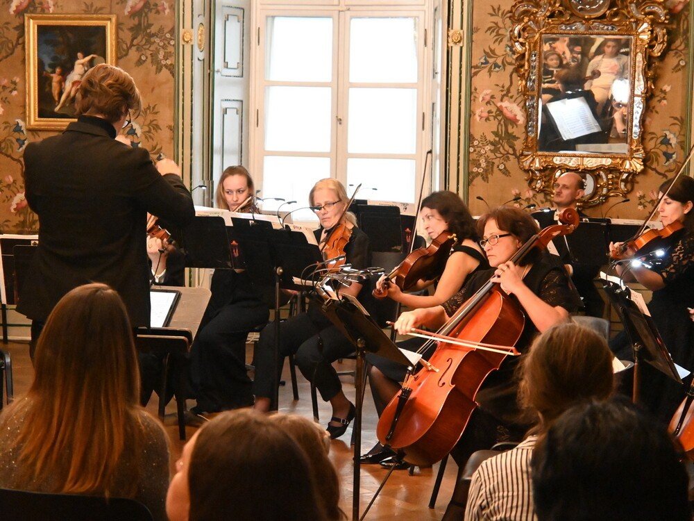 Compoziții de Wolfgang Amadeus Mozart, Leopold Mozart și Johann Christian Bach alcătuiesc programul pe care Filarmonica Sibiu și Muzeul Brukenthal îl propun pentru vineri, 19 aprilie, în fastuosul Salon de Muzică al Palatului Brukenthal din Piața Mare.