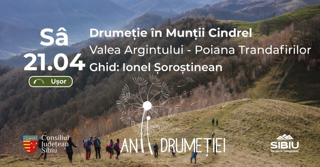 Echipa Anii Drumeției invită iubitorii de aventură, duminică, 21 aprilie 2024, într-o drumeție cu dificultate ușoară spre medie în Munții Cindrel, pe traseul Valea Argintului – Vârful Drăguț – Poiana Trandafirilor – retur.