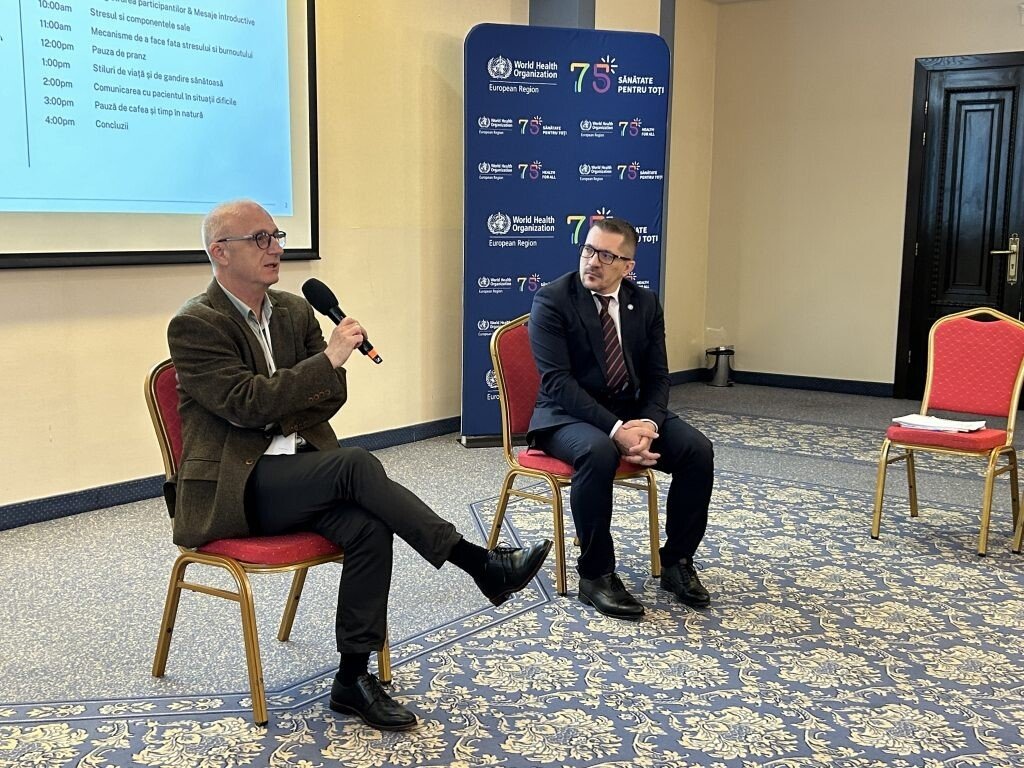 Câteva zeci de angajați ai Spitalului Clinic Județean de Urgență Sibiu, medici, asistente și personal nemedical deopotrivă, beneficiază în perioada 22 și 24 aprilie 2024 de ateliere de management al stresului și burnout-ului și de comunicare în situații dificile, oferite de specialiștii psihologi ai Biroului OMS (Organizația Mondială a Sănătății) România. La workshop s-au înscris și câteva persoane din afara unității noastre, respectiv un angajat al Spitalului de Pediatrie Sibiu și unul de la Spitalul de Pneumoftiziologie Sibiu, numărul participanților ajungând la 80 de persoane.