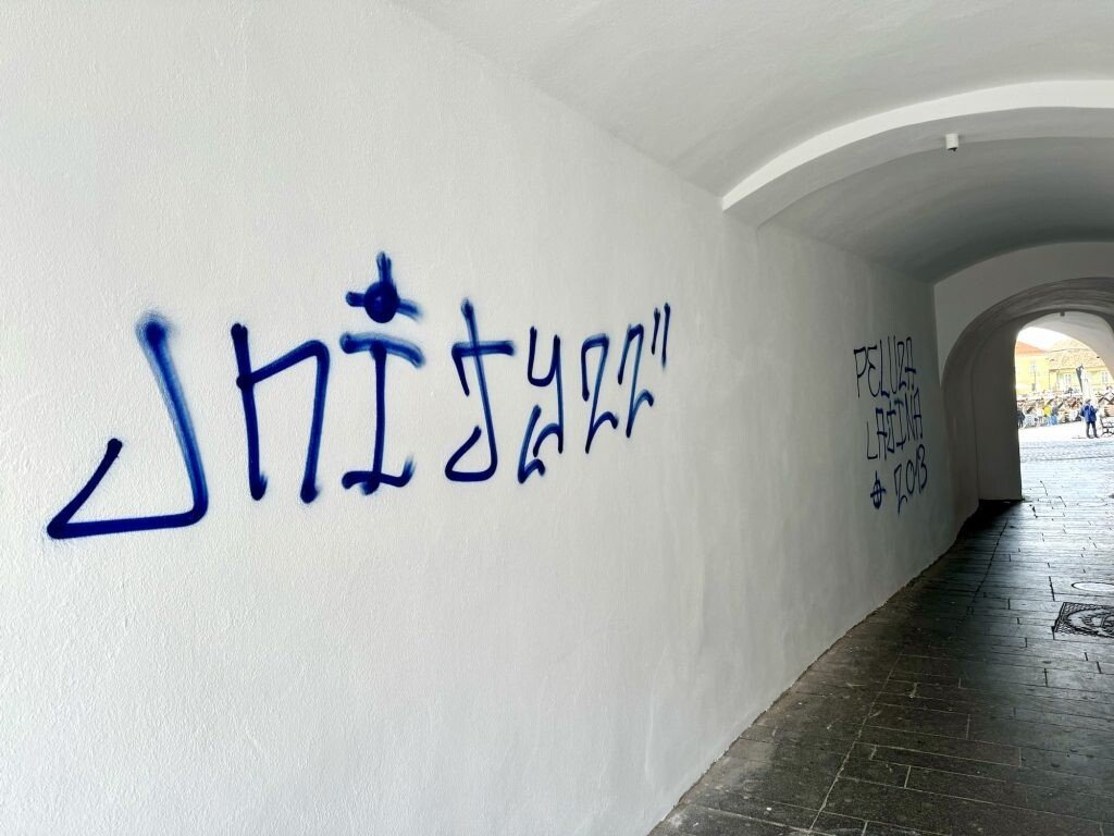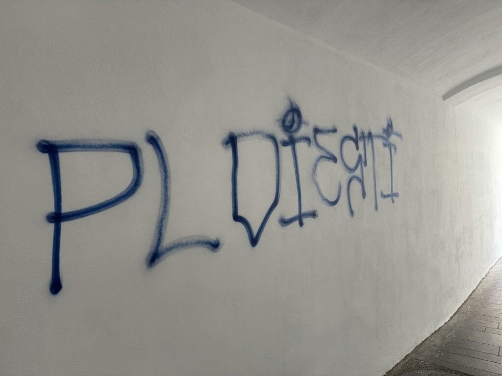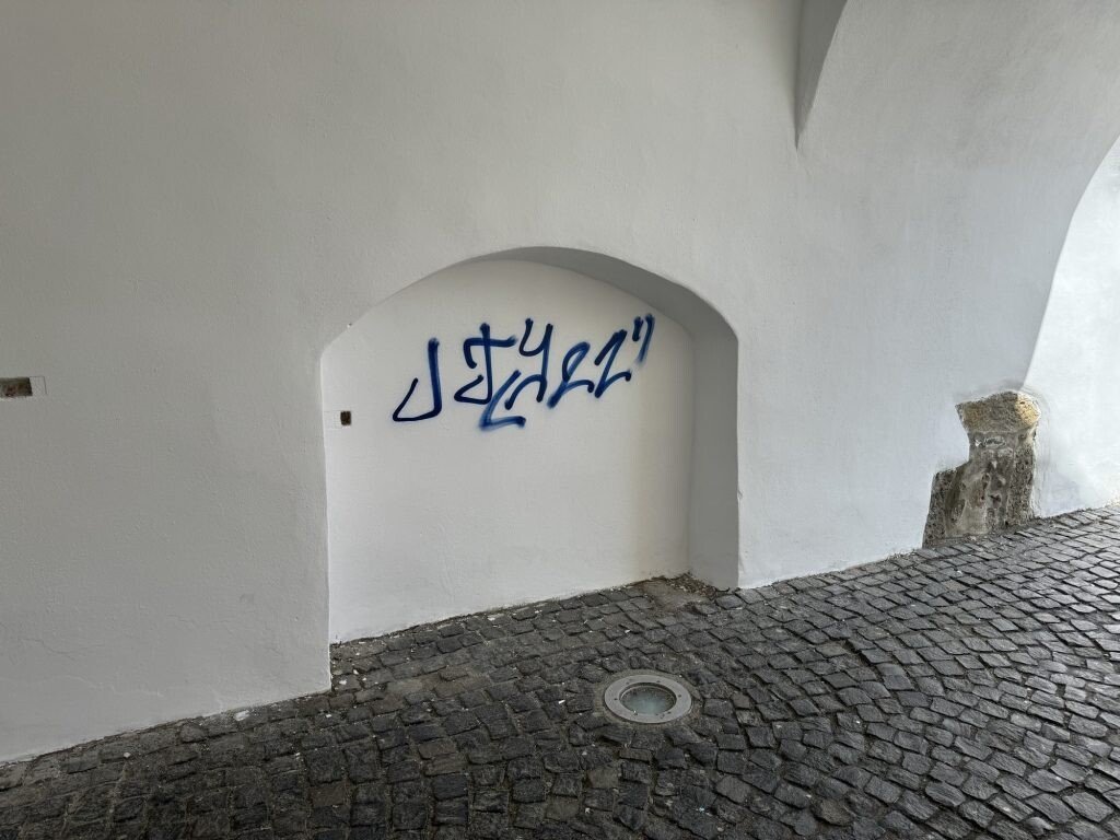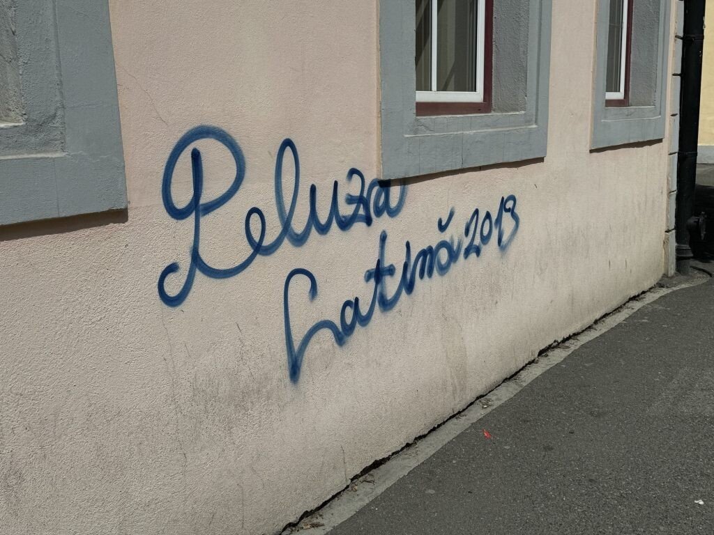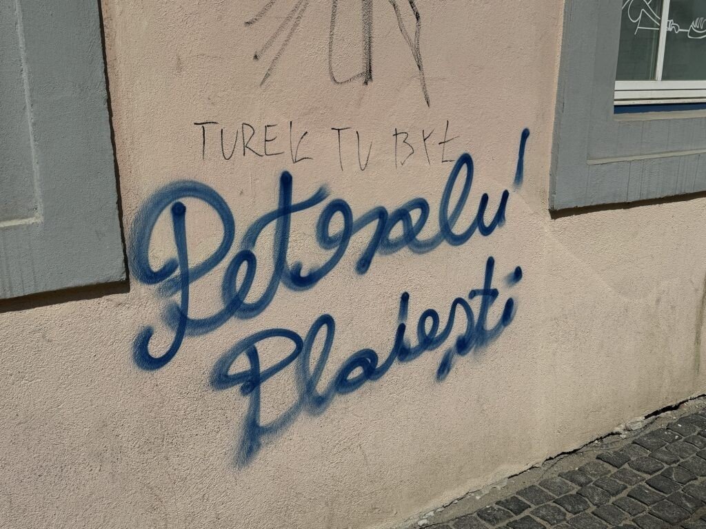 Mai multe ziduri ale unor clădiri istorice din centrul Sibiului, inclusiv cei ai sediului F.D.G.R, au fost vandalizați de fanii echipei de fotbal Petrolul Ploiești.
