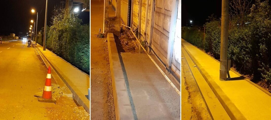 În primul rând au eliminat tot trotuarul de la Școala de Câini până la Zoo de pe partea stângă cum mergi spre Zoo. Au făcut locuri de parcare, iar trotuarul a rămas o fâșie greu accesibilă. Mai ales că îți iei o creangă în cap. Stați liniștiți că nu puteți circula pe acolo, pentru că nu este gata. Se lucrează să se vadă că se lucrează, adică se ține strada în șantier săptămâni la rând.