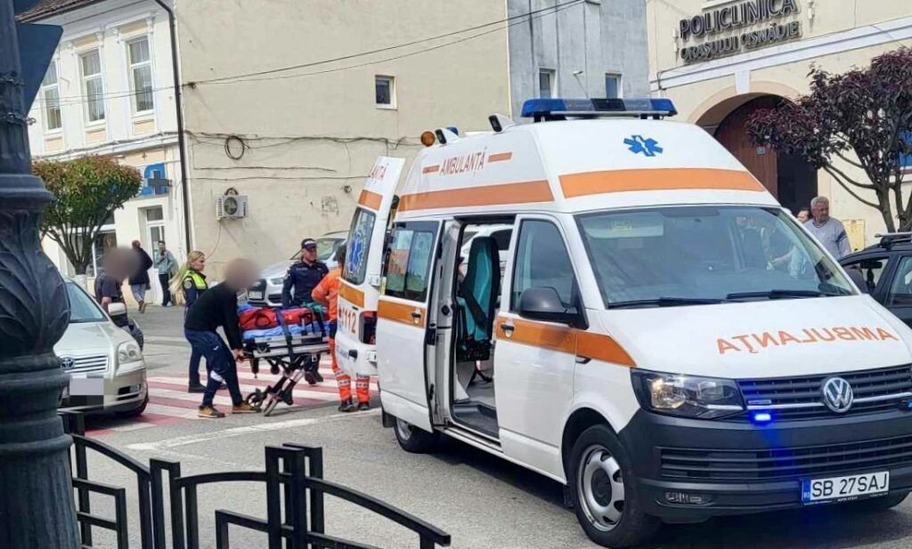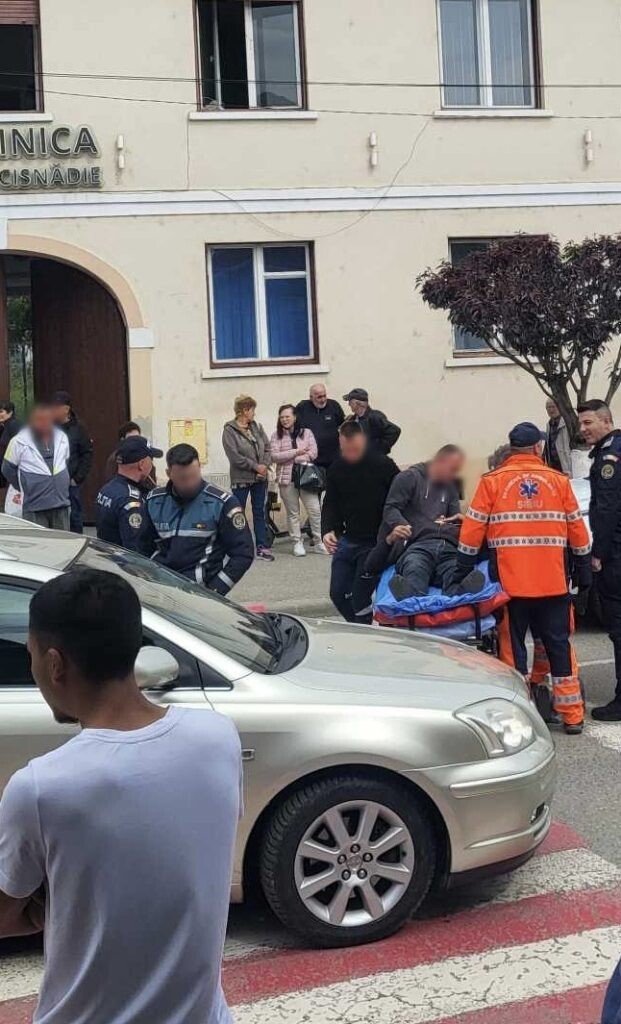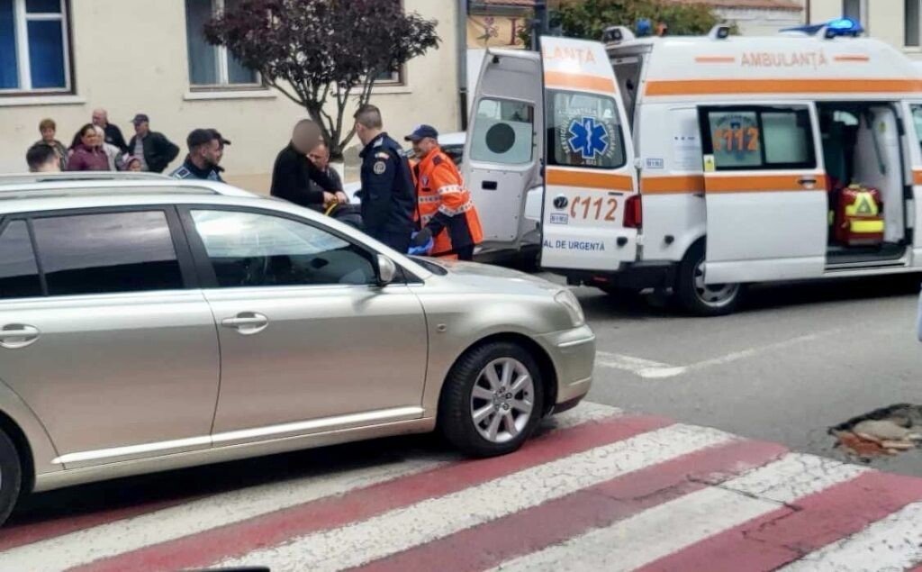 Un pieton a fost lovit de o mașină, în jurul orei 11:00, pe trecerea de pietoni de lângă Policlinica orașului Cisnădie.