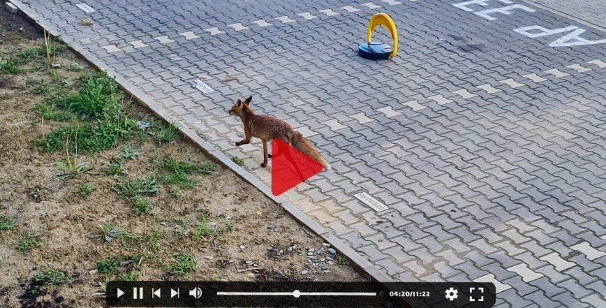 O vulpe a fost filmată, în această dimineață, în timp ce cotrobăia pe lângă blocurile situate pe strada Doamna Stanca din Șelimbăr.