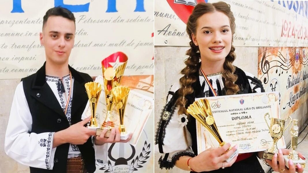 Gabriel Gândilă şi Adina Drăghici, elevi ai Şcolii Populare de Arte şi Meserii „Ilie Micu” din Sibiu, au reuşit să obţină trofeul şi premiul I la Festivalul Naţional Lira cu briliante.
