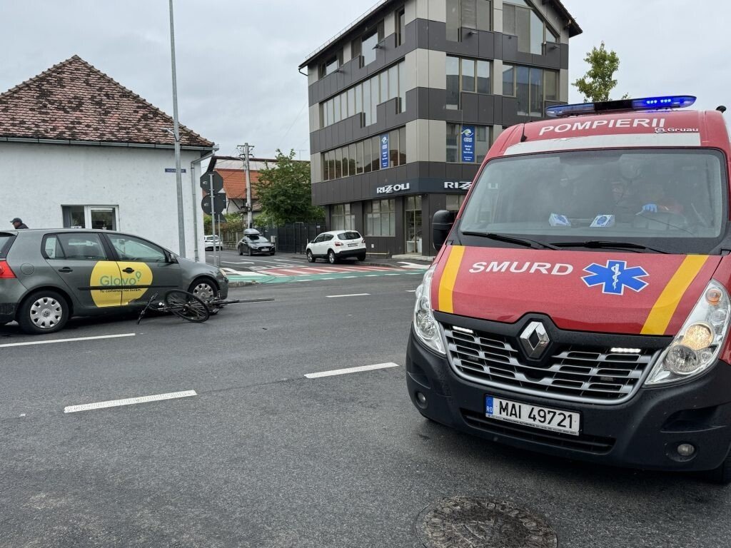 Biciclistă lovită de o mașină, pe Calea Dumbrăvii din Sibiu