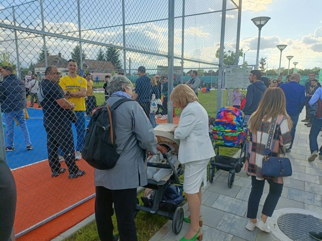 La capitoul îmbrăcăminte, copiii au venit îmbrăcați de sport. Firesc, pentru că pentru asta sunt terenurile. Primarul Astrid Fodor a ales o ținută sobră, la fel ca și consilierii FDGR. Costumele acestora îi făceau vizibili când treceau în grup printre grupurile de copii.
