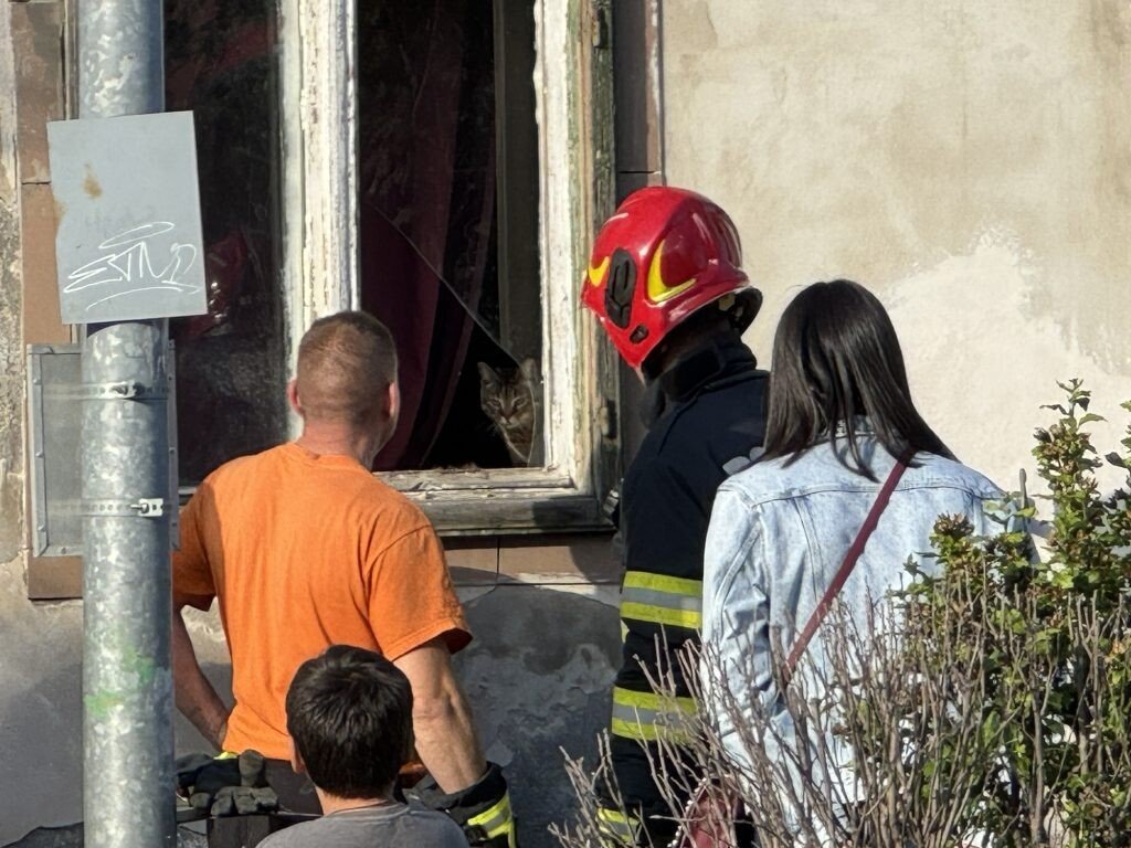 Echipaje de pompieri și poliție au intervenit pentru eliberarea mai multor pisici captive în interiorul unei case. Conform informațiilor de la fața locului, proprietarii pisicilor ar locui în Germania iar pisicile ar fi fost lăsate în grija unor prieteni. Pompierii ISU SIBIU au desfăcut sticla din rama unui geam și au început să evacueze pisicile.