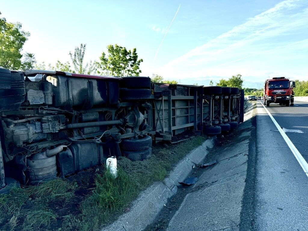 Conform polițiștilor rutieri sibieni, în timp ce conducea un camion spre Sibiu, un bărbat în vârstă de 55 de ani, din județul Vâlcea, a pierdut controlul direcției de deplasare și s-a răsturnat în afara părții carosabile.