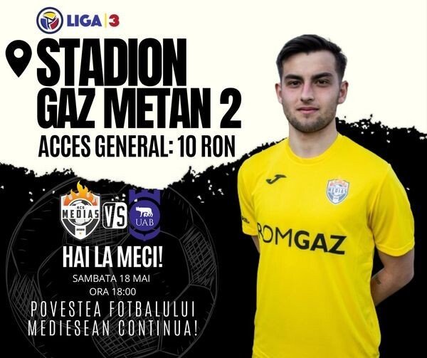 ACS Mediaș va juca sâmbătă cu CS Universitar Alba Iulia în ultima etapă a play-off-ului seriei a noua a Ligii a treia. Partida va începe la ora 18.00.