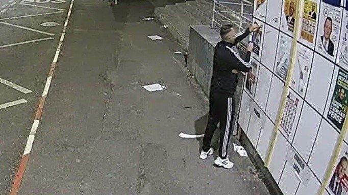Bărbat filmat când rupea afișe electorale de pe un panou din Sibiu