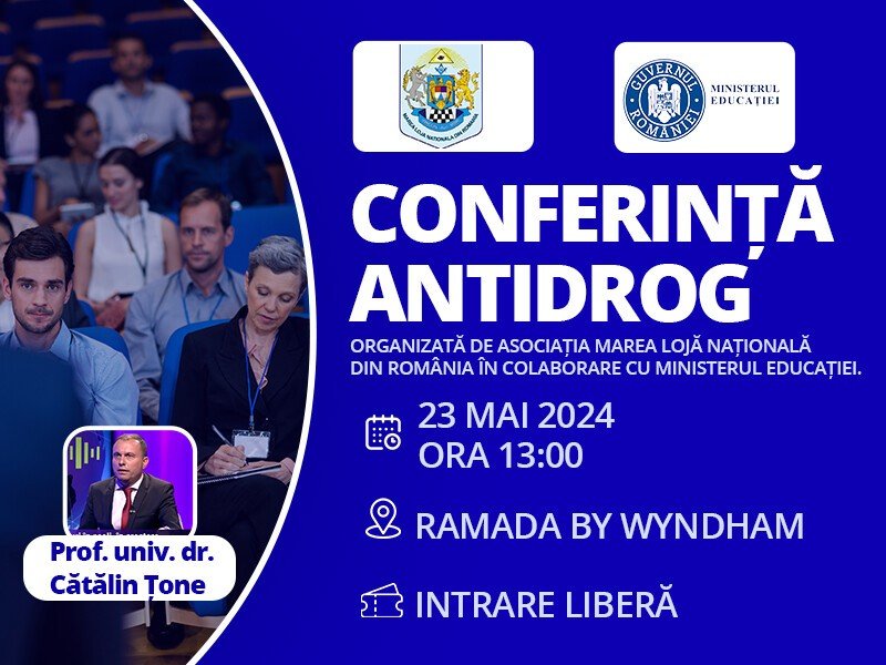 Pe data de 23 mai 2024, la ora 13:00, va avea loc o conferință importantă pe tema prevenirii consumului de droguri, organizată de Asociația Marea Lojă Națională din România în colaborare cu Ministerul Educației. Evenimentul se va desfășura la Hotel Ramada și va aduce în prim-plan problematica flagelului drogurilor, cu accent pe rolul educației în combaterea acestui fenomen.