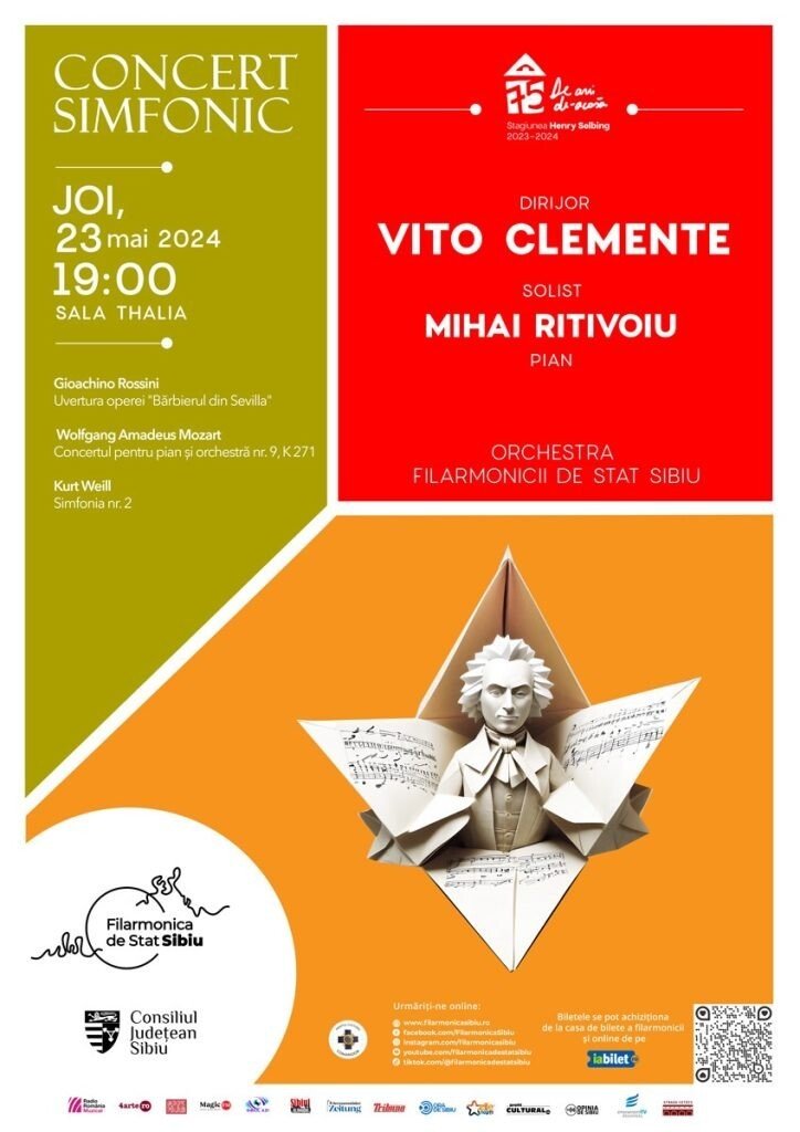 Vito Clemente abordează cu succes atât repertoriul de operă, cât și cel simfonic. Având studii nu doar muzicale, ci și umaniste, dirijorul invitat are o activitate intensă pe plan internațional. De la dirijat la cea de profesor. De la director artistic sau muzical al unor festivaluri importante din lume, la înregistrări care au obținut premii importante. Iar parcursul său este de neoprit. De data aceasta, călătoria sa muzicală are loc la Sibiu. Deja un centru muzical în crescendo!